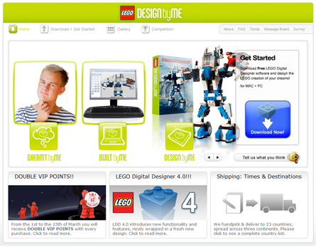 I recently found this cool service offered by LEGO called ‘Design by Me’, which allows you to create a custom LEGO kit. What is extra cool is that your LEGO masterpiece is shipped to you in a custom package depicting your creation and it’s name (visible in the image above).