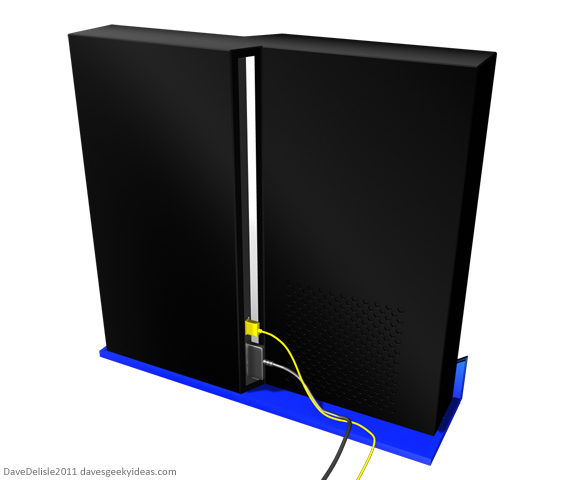 This is a very simple design, using a very low-key approach. Typically I would add LED lights and a few other bells and whistles. However in light of Sony’s latest PS3 console iteration, which reduces the LED lights and power consumption, I thought I’d take the same approach. One LED power indicator, and it’s pretty much a black slab. A hybrid of the PS2 and PS3.