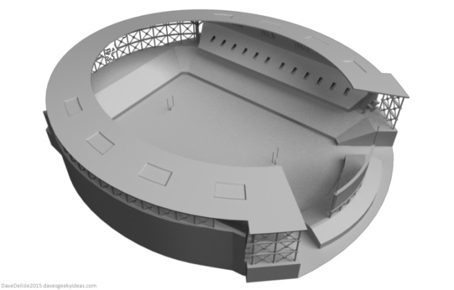 Inspired by the beautiful new IG Field stadium in Winnipeg, I thought I’d put together a stadium design for my Calgary Stampeders. As you probably surmised from the title and image, this stadium features a distinct horse shoe roof.