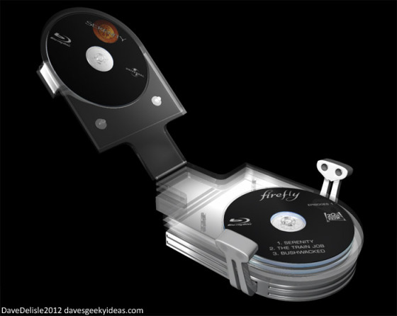 An obscure but fitting choice for a Blu-Ray case: the media player seen in the film Serenity that River Tam uses to see the plight of Miranda. The size of the player looked perfect, making this case almost a prop replica.