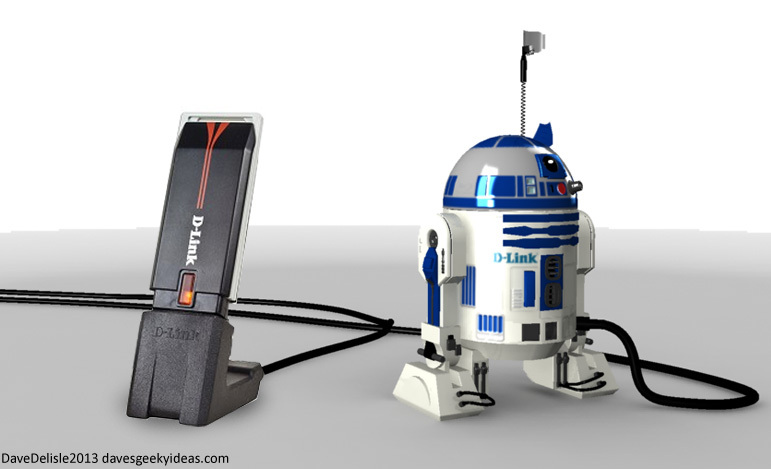 We switched to wireless internet recently, so I got one of these Wireless Adapters (the D-Link DWA-130, pictured) that came with a USB cradle for my workstation. Its blinking light and leaning stance reminded me of a certain Star Wars character, so of course I thought wouldn’t it be neat…
